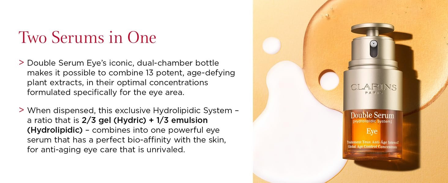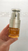 Clarins Double Serum Eye is a powerful, plant-based anti-aging eye treatment formulated to visibly smooth, firm, hydrate, and revitalize the eye area in just 7 days. This dual-phase formula features 13 potent plant extracts, including Turmeric, and is made with 96% natural ingredients. It delivers targeted action against puffiness, fine lines, wrinkles, and dark circles—revealing brighter, more youthful-looking eyes.