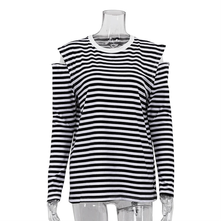 Women's Off-Shoulder Stripe Top - Long Sleeve Casual Blouse